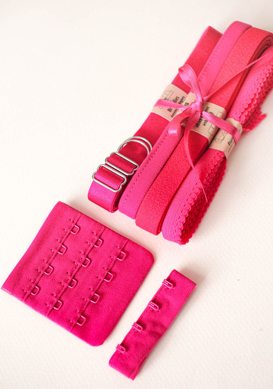 | ✄ 2m d'élastique lingerie de 0,7cm de large, pour la taille et les cuisses. ✄ 2m d'élastique soutien-gorge de 1,3cm de large. ✄ 1m de biais cache-armature. ✄ De l'élastique bretelle de 1,5 cm de large ✄ + 1 paire d'anneaux et réglettes correspondantes. ✄ 1 agrafage de 5,7 cm. ✄ Un ruban coordonné, pour faire un noeud et apporter la petite touche de finition. |