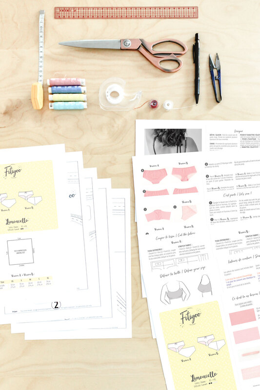 🍋 Cello, Version B, avec son dos en dentelle, est un équilibre entre la douceur du tissu et le raffinement de la dentelle. Toutes les tailles du patron Cello (Version B) sont compatibles avec nos Kits culotte !